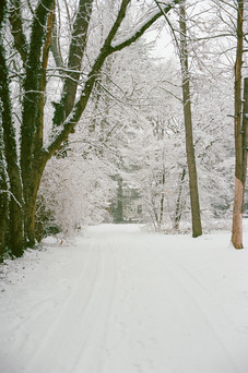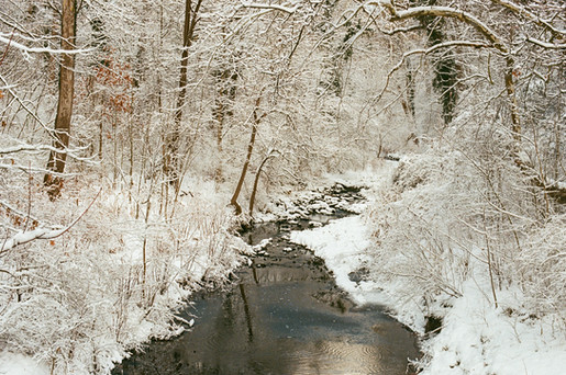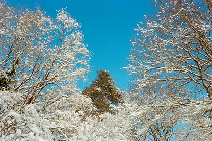 The next day, I went for a walk through my neighborhood and the nearby Wissahickon Valley Park with my camera in hand. My first snow on film! I loved the sound of the snow crunching beneath my feet, the contrast of the bright white snow to the bright blue sky. When the wind blew, bitter cold kissing my cheeks, the snow fell from the bare branches and covered me with fairy dust.